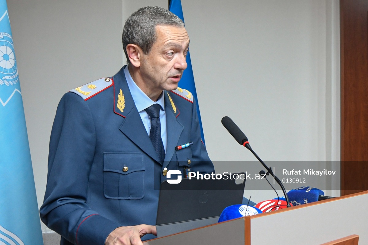 Hava Nəqliyyatında Baş Gömrük İdarəsinə təşkil olunan mediaturda çıxış edən Hava Nəqliyyatında Baş Gömrük İdarəsinin rəisi, general-mayor Anar Cahangirov.