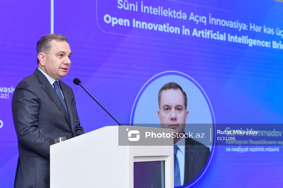 ASAN Süni İntellekt Mərkəzinin (ASAN AI Hub) açılış mərasimində çıxış edən Azərbaycan Respublikası rəqəmsal inkişaf və nəqliyyat nazirinin müavini Samir Məmmədov.