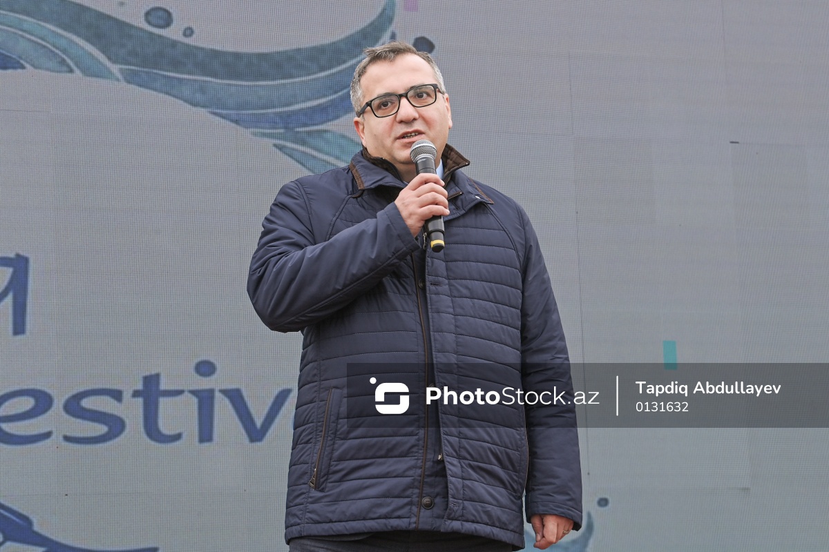 Neftçala rayonunda təşkil olunan balıq festivalında iştirak edən kənd təsərrüfatı nazirinin müşaviri Zaur Əliyev.