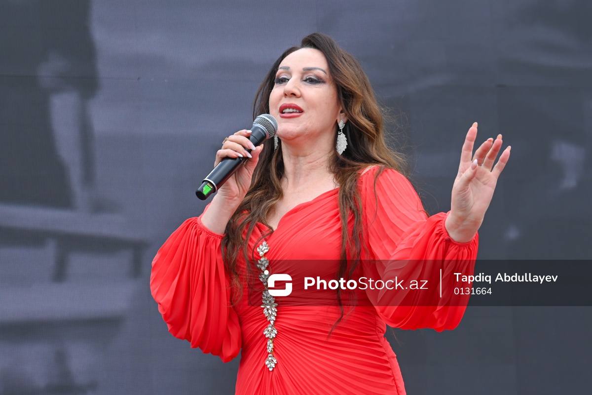 Neftçala rayonunda təşkil olunan balıq festivalında iştirak edən Azərbaycan Respublikasının Xalq artisti, xanəndə Gülyaz Məmmədova.