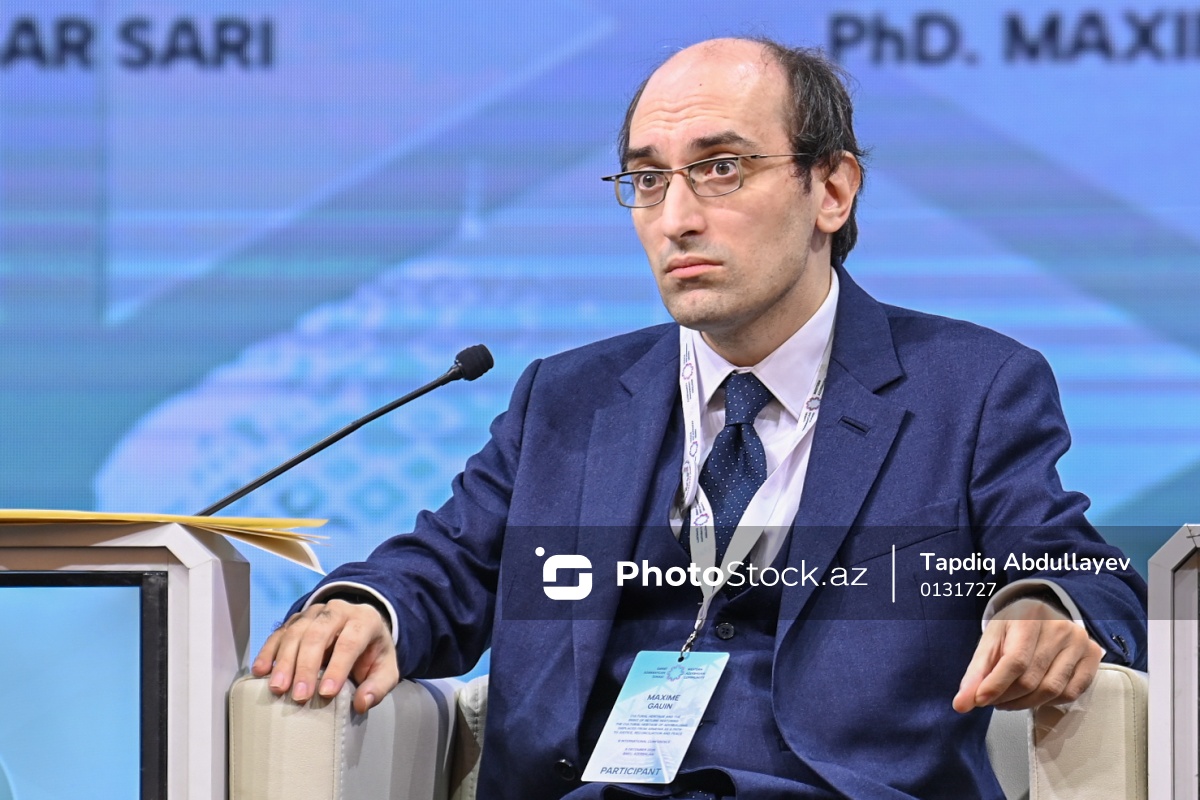 "Mədəni irs və qayıdış hüququ: Ermənistandan didərgin salınmış azərbaycanlıların mədəni irsinin bərpası - ədalətə, barışığa və sülhə aparan yol kimi" mövzusunda III beynəlxalq konfransda iştirak edən ADA Universitetinin müəllimi, fransalı tarixçi, politoloq Maksim Quen.