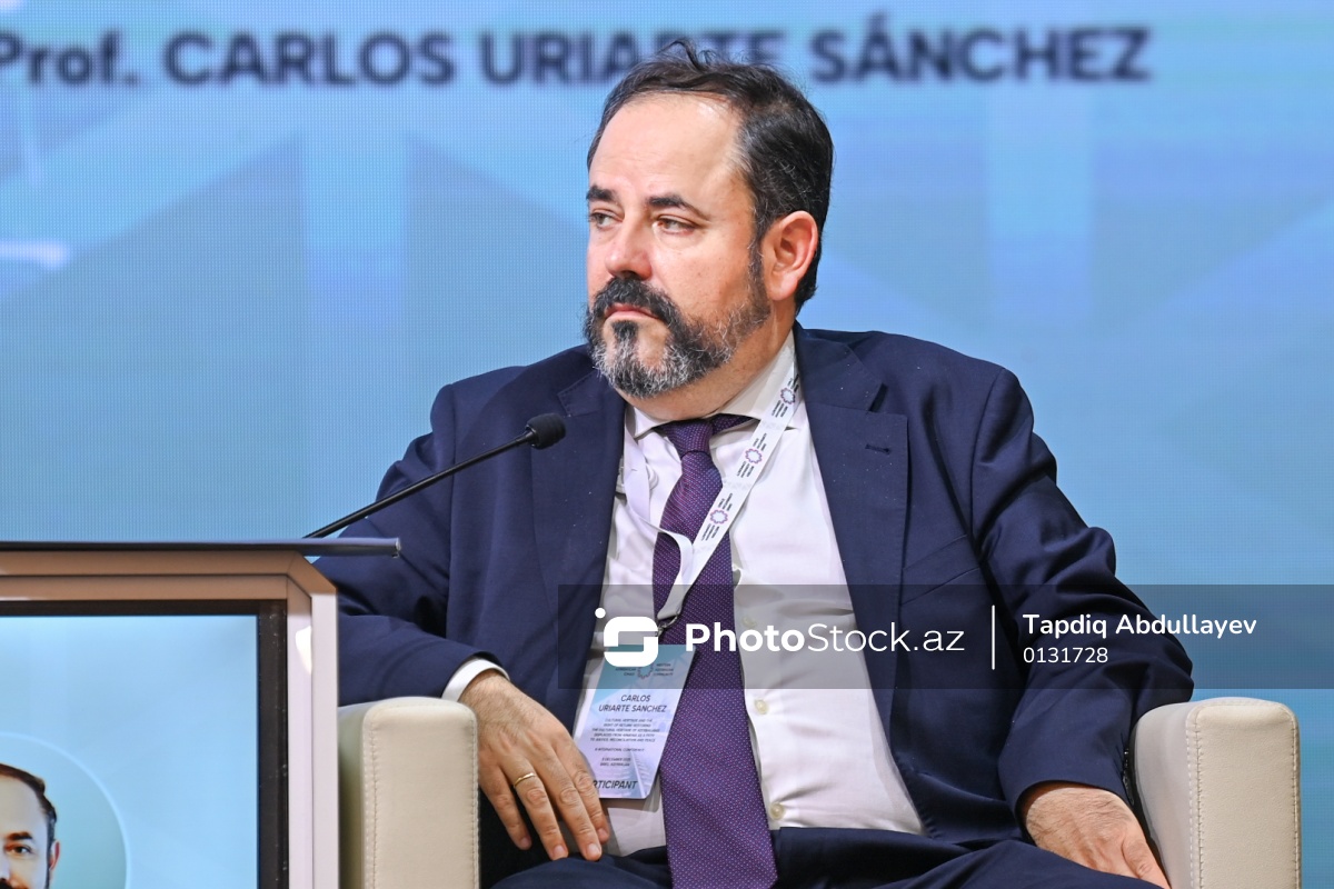 "Mədəni irs və qayıdış hüququ: Ermənistandan didərgin salınmış azərbaycanlıların mədəni irsinin bərpası - ədalətə, barışığa və sülhə aparan yol kimi" mövzusunda III beynəlxalq konfransda iştirak edən İspaniyanın Beynəlxalq Paneuropean İttifaqının Baş katibi, professor Karlos Uriarte Sançez.