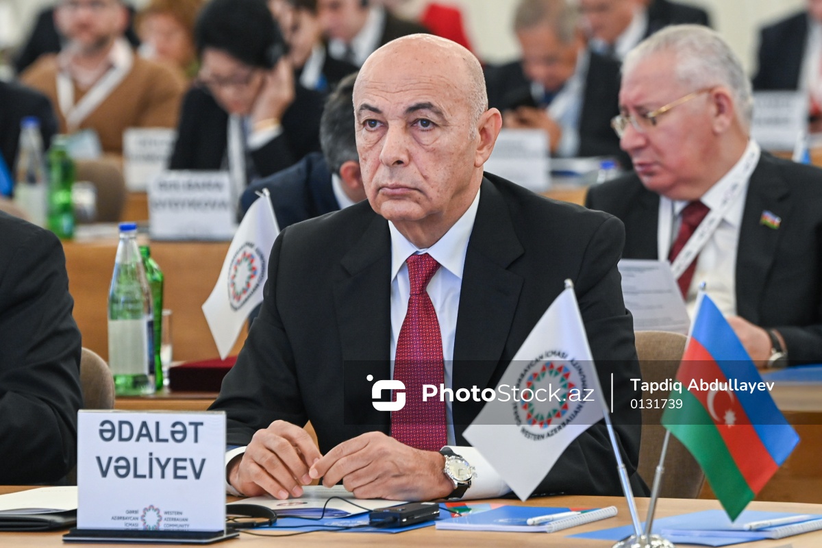 "Mədəni irs və qayıdış hüququ: Ermənistandan didərgin salınmış azərbaycanlıların mədəni irsinin bərpası - ədalətə, barışığa və sülhə aparan yol kimi" mövzusunda III beynəlxalq konfransda iştirak edən Azərbaycan Respublikası Prezidenti Administrasiyasının Siyasi partiyalar və qanunvericilik hakimiyyəti ilə əlaqələr şöbəsinin müdiri Ədalət Vəliyev.