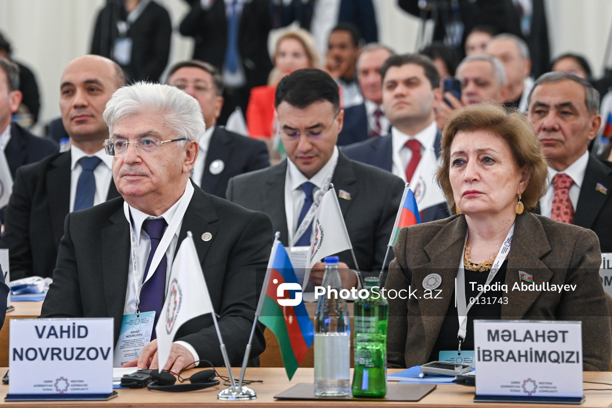"Mədəni irs və qayıdış hüququ: Ermənistandan didərgin salınmış azərbaycanlıların mədəni irsinin bərpası - ədalətə, barışığa və sülhə aparan yol kimi" mövzusunda III beynəlxalq konfransda iştirak edən Qərbi Azərbaycan İcması Nəzarət-Təftiş Komissiyasının sədri Vahid Novruzov (sol) və Qərbi Azərbaycan İcması Qadınlar Şurasının sədri, Milli Məclisin deputatı Məlahət İbrahimqızı (sağ).