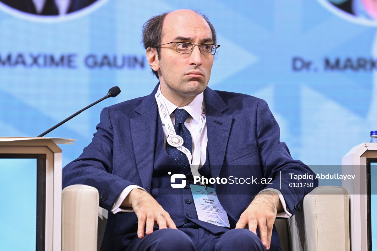 "Mədəni irs və qayıdış hüququ: Ermənistandan didərgin salınmış azərbaycanlıların mədəni irsinin bərpası - ədalətə, barışığa və sülhə aparan yol kimi" mövzusunda III beynəlxalq konfransda iştirak edən ADA Universitetinin müəllimi, fransalı tarixçi, politoloq Maksim Quen.