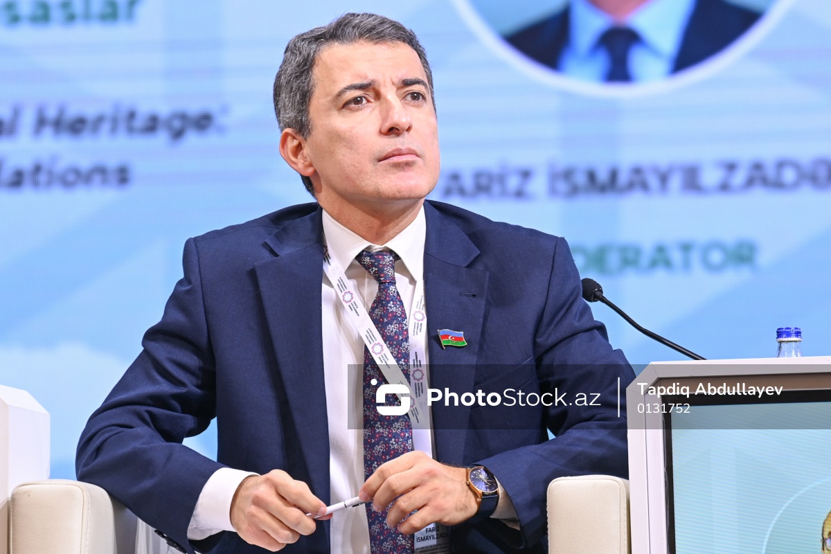 "Mədəni irs və qayıdış hüququ: Ermənistandan didərgin salınmış azərbaycanlıların mədəni irsinin bərpası - ədalətə, barışığa və sülhə aparan yol kimi" mövzusunda III beynəlxalq konfransda iştirak edən Milli Məclisin Qərbi Azərbaycana Qayıdış üzrə Təşəbbüs Qrupunun üzvü, Milli Məclisin deputatı, ADA Universitetinin prorektoru Fariz İsmayılzadə.