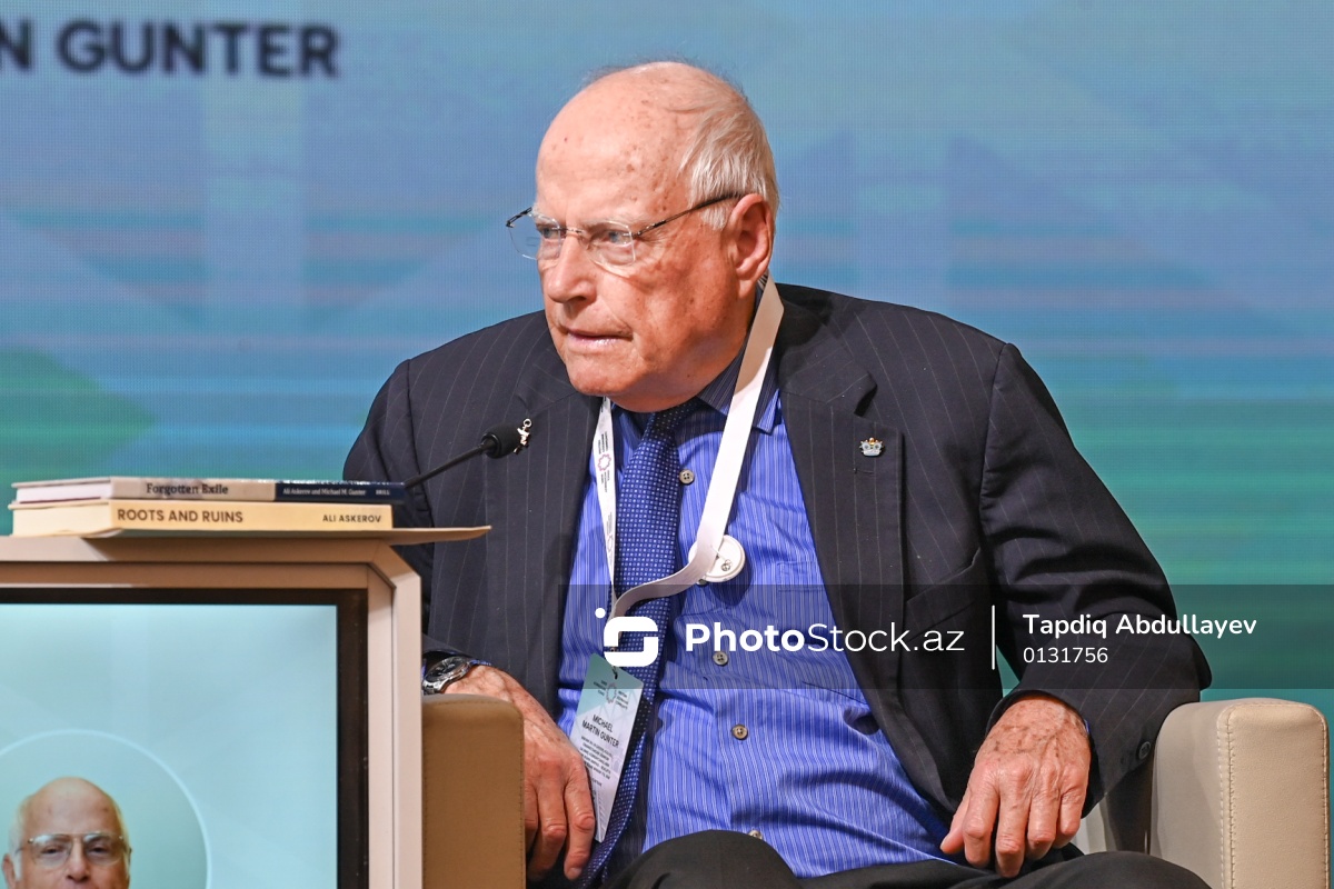 "Mədəni irs və qayıdış hüququ: Ermənistandan didərgin salınmış azərbaycanlıların mədəni irsinin bərpası - ədalətə, barışığa və sülhə aparan yol kimi" mövzusunda III beynəlxalq konfransda iştirak edən Tennesi Texnologiya Universitetinin professoru Maykl Martin Günter.