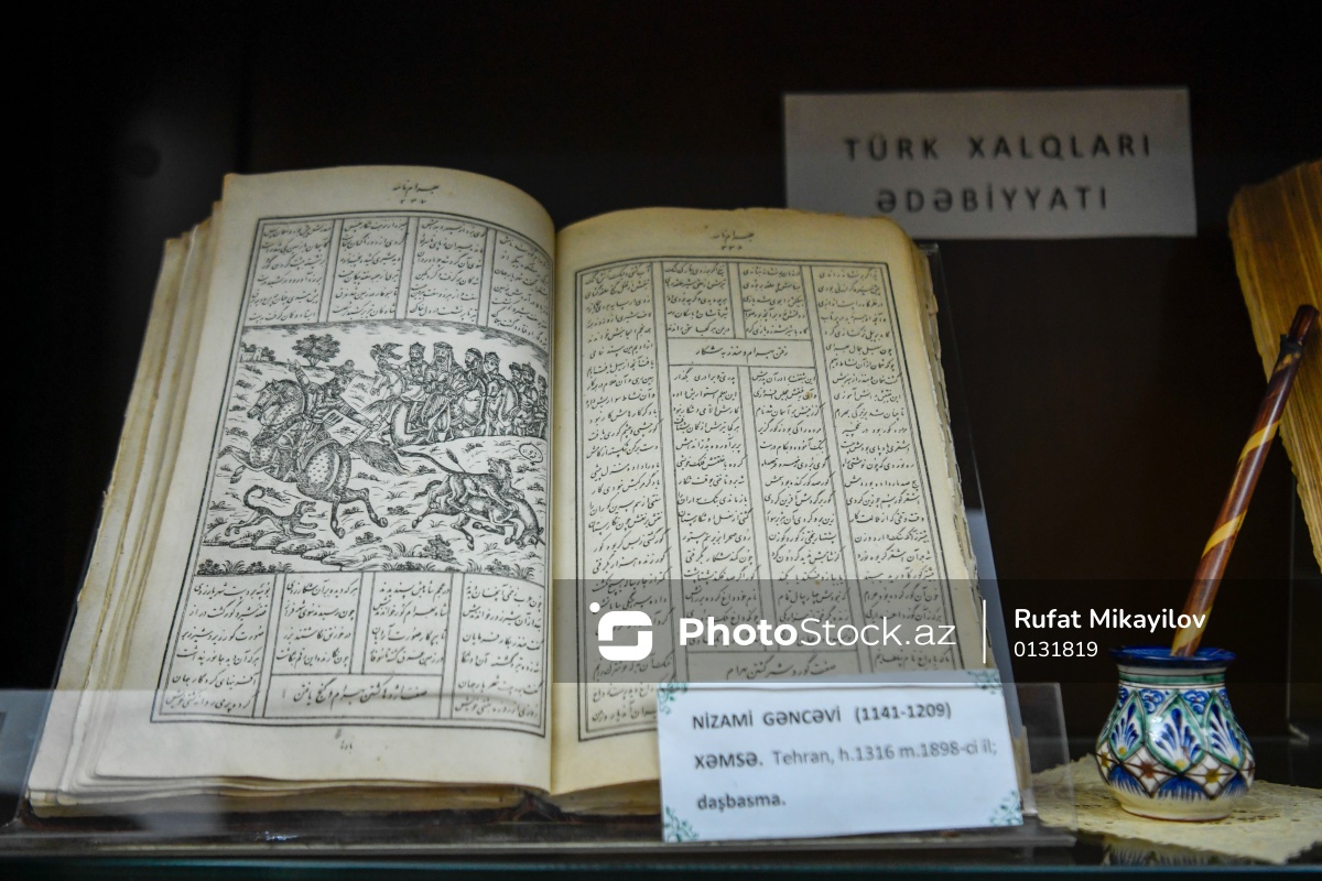 Milli Kitabxanada saxlanılan Nizami Gəncəvinin Tehranda daşbasma üsulu ilə çap olunmuş "Xəmsə" əsəri.