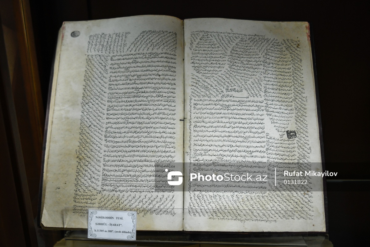 Milli Kitabxanada saxlanılan Nəsirəddin Tusinin ərəb dilində çap olunmuş "Şərhül-İşarat" əsəri.