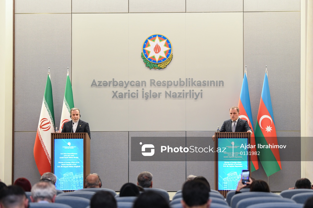 Dekabrın 8-i Azərbaycan Respublikasının xarici işlər naziri Ceyhun Bayramov (sağ) və İran İslam Respublikasının xarici işlər naziri Seyid Abbas Əraqçının (sol) birgə mətbuat konfransı keçirilib. Konfrans çərçivəsində Azərbaycanla İran arasında əlaqələrin güclənməsi, hər iki ölkə arasındakı dostluq, əməkdaşlıq və qardaşlıq münasibətləri, ticarət əlaqələrinin artırılması istiqamətində müzakirələr aparılıb. Xarici işlər naziri Ceyhun Bayramov bu gün keçirilən görüşlər zamanı beynəlxalq təşkilatlar çərçivəsində Azərbaycan–İran münasibətlərinə diqqətlə nəzər salındığını qeyd edib. Nazir bildirib ki, Azərbaycanla İran arasında hava əlaqəsinin genişləndirilməsi istiqamətində müzakirələr aparılır. Həmçinin İran xarici işlər naziri Seyid Abbas Əraqçı ölkələrarası əlaqələri daha da inkişaf etdirmək, Şimal–Cənub və digər nəqliyyat dəhlizlərini gücləndirməyin planlaşdırıldığını vurğulayıb.