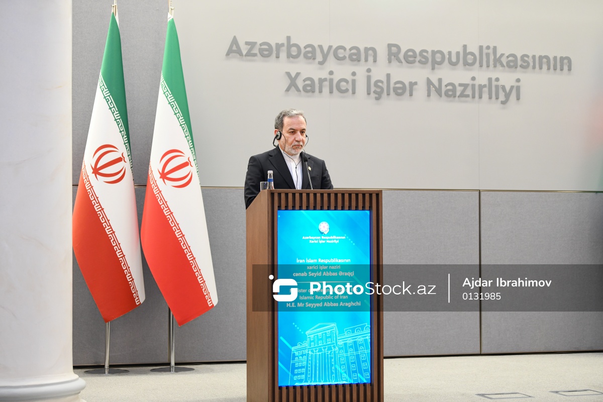 Dekabrın 8-i Azərbaycan Respublikasının Xarici İşlər Nazirliyində keçirilən mətbuat konfransında çıxış edən İran İslam Respublikasının xarici işlər naziri Seyid Abbas Əraqçı.