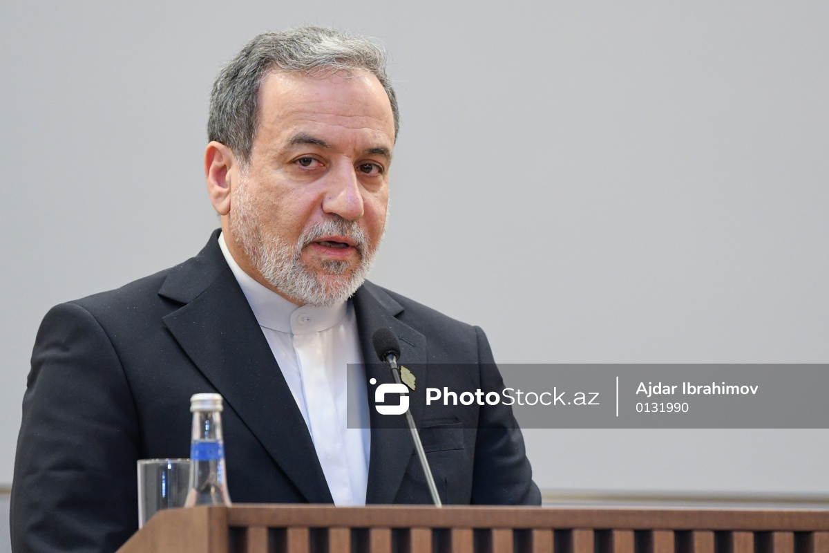Dekabrın 8-i Azərbaycan Respublikasının Xarici İşlər Nazirliyində keçirilən mətbuat konfransında çıxış edən İran İslam Respublikasının xarici işlər naziri Seyid Abbas Əraqçı.