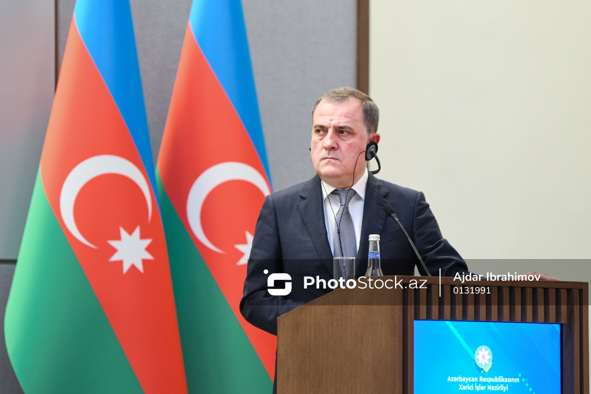 Dekabrın 8-i Azərbaycan Respublikasının Xarici İşlər Nazirliyində keçirilən mətbuat konfransında çıxış edən xarici işlər naziri Ceyhun Bayramov.