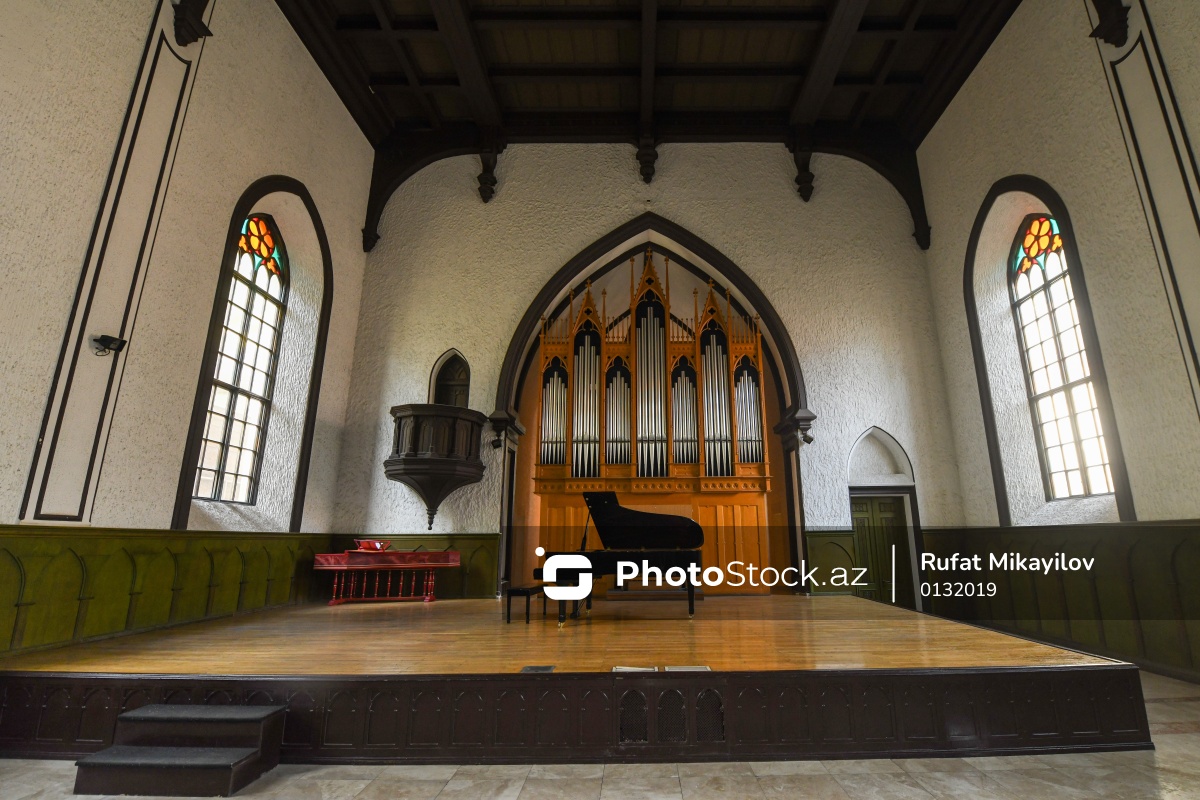 Azərbaycan Dövlət Akademik Filarmoniyasının Kamera və Orqan Musiqisi zalının binası Bakıda tikilən memarlıq abidələrinin sırasında xüsusi yer tutur. Tarixi sənədlərə istinadən XIX əsrin ortalarında neft bumu səbəbilə Bakıya alman və İsveçrə mənşəli insanların axını müşahidə olunurdu. Onlar dini mərasimlərinin keçirilməsi məqsədilə Bakıda öz kilsələrini inşa etmək qərarına gəlirlər. 1896-cı ilin mart ayında 24 yaşlı memar Adolf Eyxler tərəfindən İncilçi-Lüteran kilsəsinin (Kirxa) bünövrəsi qoyulur və 1899-cu ildə dini ibadət yeri kimi istifadəyə verilir. Kilsənin tikintisinə Nobel qardaşları da dəstək verir və bu səbəbdən binanın açılış mərasimində Bakının qubernatoru ilə birgə Emmanuel Nobel də iştirak edir. 1900-cü ildə isə kilsədə orqan quraşdırılır və ilk konsert təşkil olunur. Sovet dövründə bir çox digər dini obyektlərlə yanaşı Kirxanın da fəaliyyəti dayandırılır, müəyyən müddət bu tarixi bina sökülmək təhlükəsi ilə üzləşir. 1989-cu ildə isə Nazirlər Kabinetinin qərarı ilə Kamera və Orqan Musiqisi Zalı adlandırılaraq Azərbaycan Dövlət Filarmoniyasının tabeliyinə verilir.