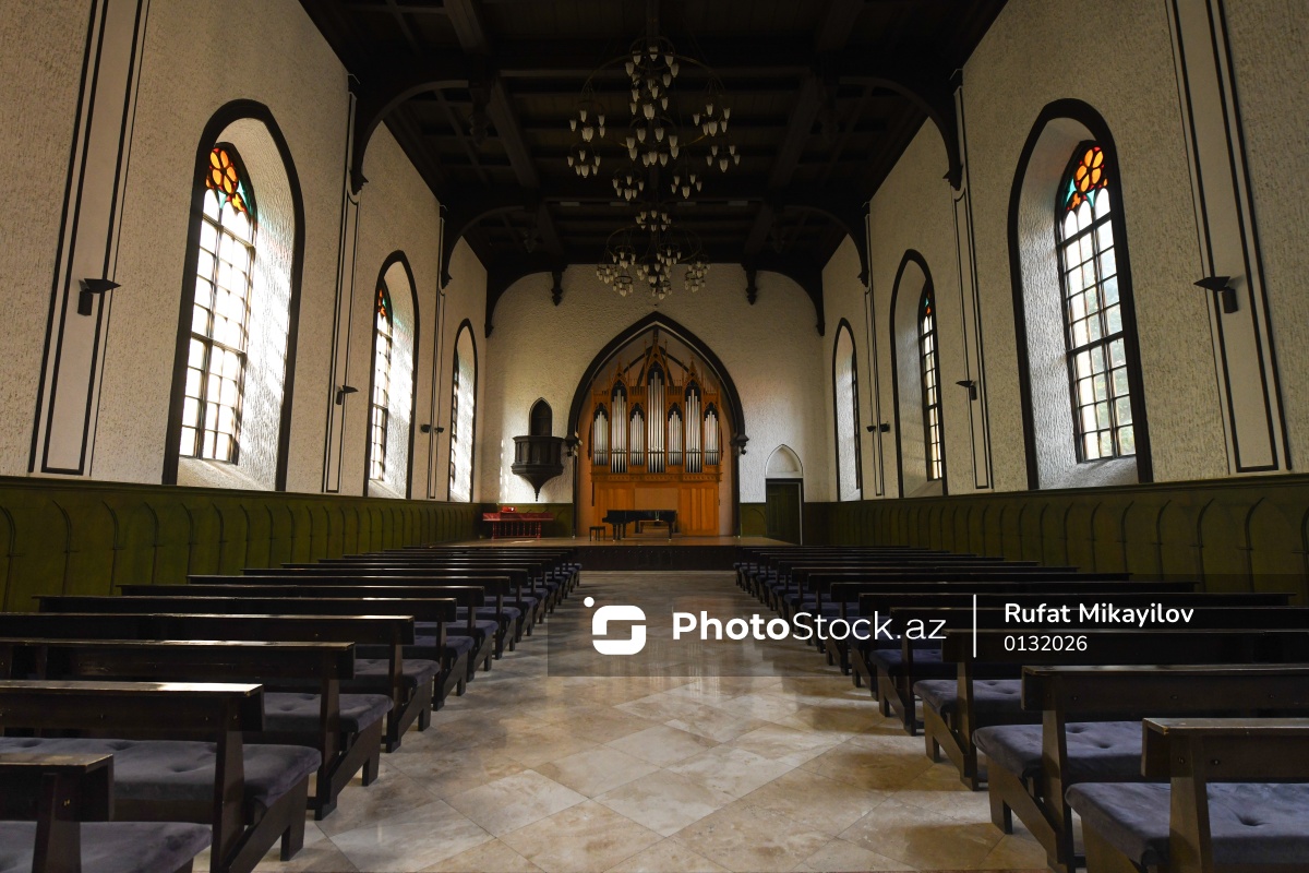Azərbaycan Dövlət Akademik Filarmoniyasının Kamera və Orqan Musiqisi zalının binası Bakıda tikilən memarlıq abidələrinin sırasında xüsusi yer tutur. Tarixi sənədlərə istinadən XIX əsrin ortalarında neft bumu səbəbilə Bakıya alman və İsveçrə mənşəli insanların axını müşahidə olunurdu. Onlar dini mərasimlərinin keçirilməsi məqsədilə Bakıda öz kilsələrini inşa etmək qərarına gəlirlər. 1896-cı ilin mart ayında 24 yaşlı memar Adolf Eyxler tərəfindən İncilçi-Lüteran kilsəsinin (Kirxa) bünövrəsi qoyulur və 1899-cu ildə dini ibadət yeri kimi istifadəyə verilir. Kilsənin tikintisinə Nobel qardaşları da dəstək verir və bu səbəbdən binanın açılış mərasimində Bakının qubernatoru ilə birgə Emmanuel Nobel də iştirak edir. 1900-cü ildə isə kilsədə orqan quraşdırılır və ilk konsert təşkil olunur. Sovet dövründə bir çox digər dini obyektlərlə yanaşı Kirxanın da fəaliyyəti dayandırılır, müəyyən müddət bu tarixi bina sökülmək təhlükəsi ilə üzləşir. 1989-cu ildə isə Nazirlər Kabinetinin qərarı ilə Kamera və Orqan Musiqisi Zalı adlandırılaraq Azərbaycan Dövlət Filarmoniyasının tabeliyinə verilir.