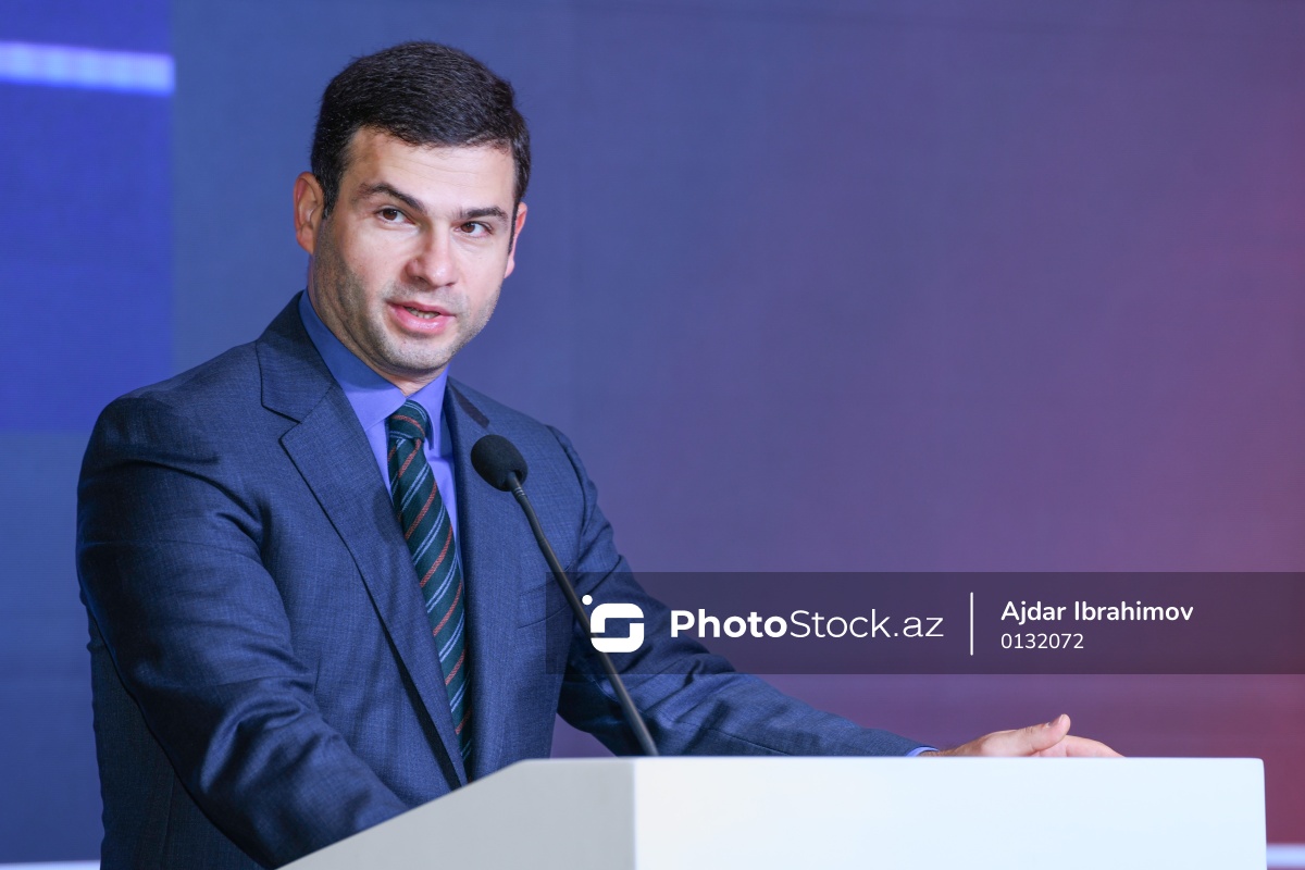 "Sənaye Təhlükəsizliyi Zirvəsi 2025" adlı tədbirdə çıxış edən İqtisadiyyat Nazirliyi yanında Kiçik və Orta Biznesin İnkişafı Agentliyi İdarə Heyətinin sədri Orxan Məmmədov.