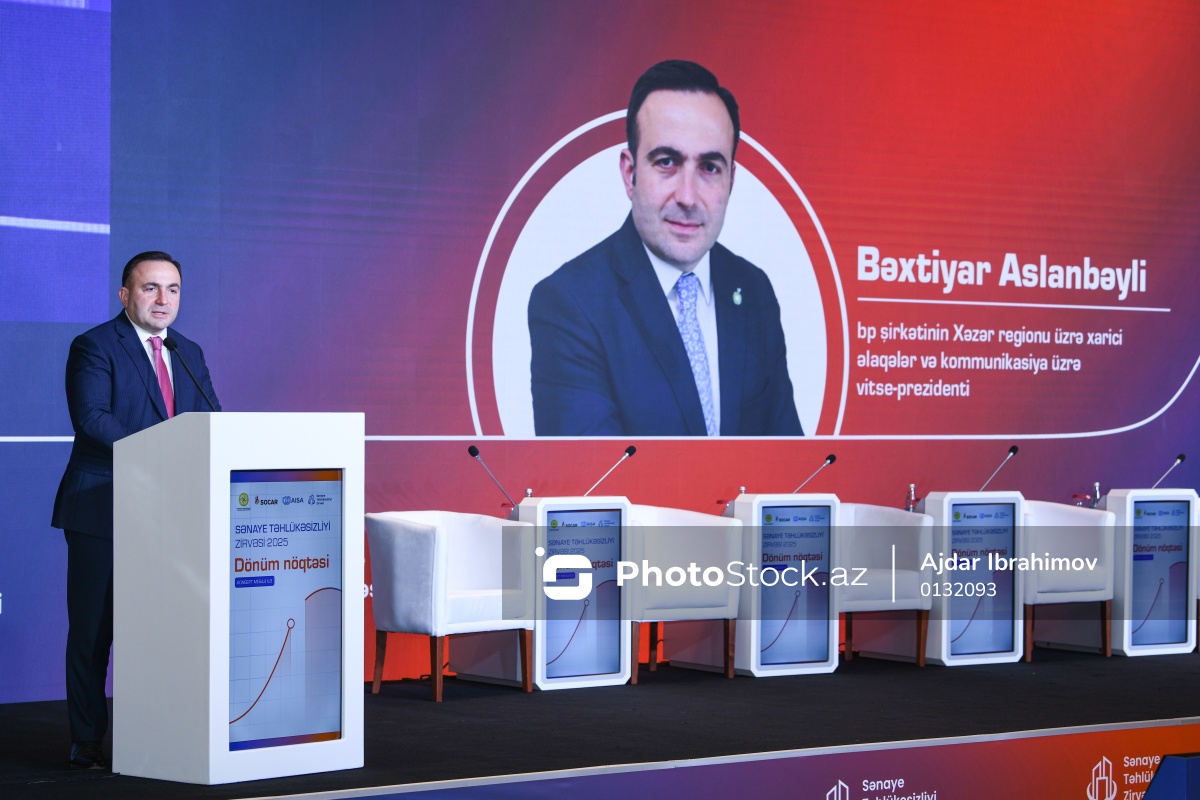 "Sənaye Təhlükəsizliyi Zirvəsi 2025" adlı tədbirdə çıxış edən BP-nin Xəzər regionunda kommunikasiya və xarici əlaqələr üzrə vitse-prezidenti Bəxtiyar Aslanbəyli.