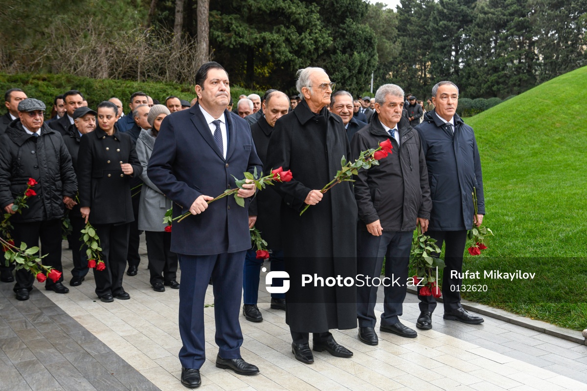 Ulu Öndər Heydər Əliyevin vəfatının 22-ci ildönümü ilə əlaqədar olaraq Fəxri xiyabanı ziyarət edən (soldan-sağa) Azərbaycan Respublikası Milli Məclisinin deputatları Əlibala Məhərrəmzadə, Polad Bülbüloğlu, Fazil Mustafa, Milli Məclis Aparatının Dövlət quruculuğu, inzibati və hərbi qanunvericilik şöbəsinin müdiri Mirhəşim Seyidov.