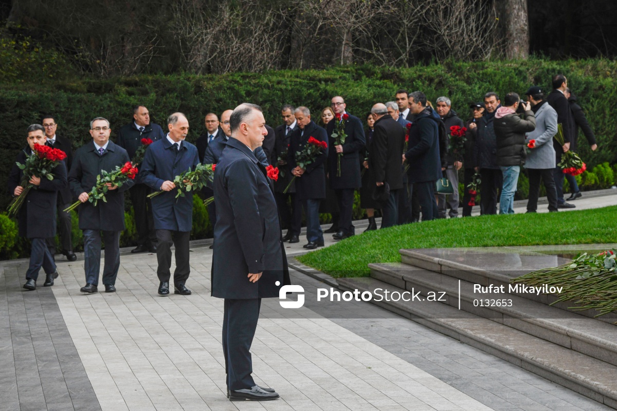 Ulu Öndər Heydər Əliyevin vəfatının 22-ci ildönümü ilə əlaqədar olaraq Fəxri xiyabanı ziyarət edən Azərbaycan Respublikasının səhiyyə naziri Teymur Musayev.