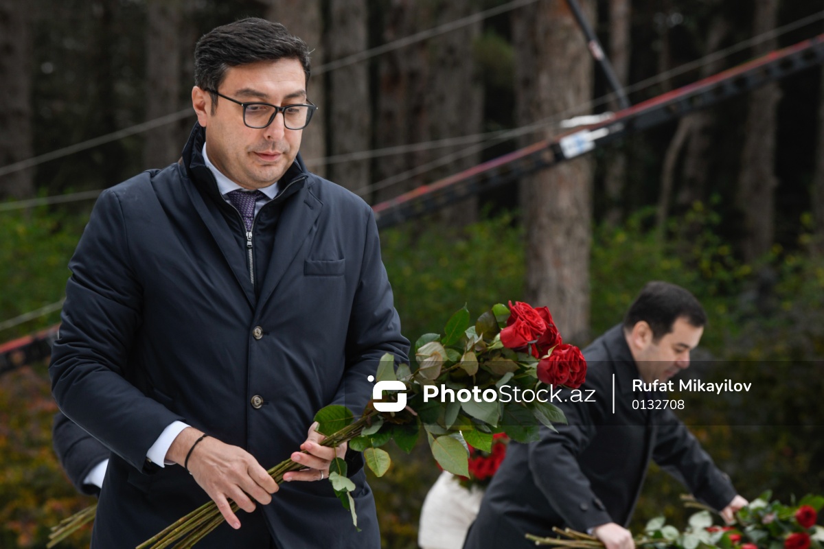 Ulu Öndər Heydər Əliyevin vəfatının 22-ci ildönümü ilə əlaqədar olaraq Fəxri xiyabanı ziyarət edən Azərbaycan Respublikasının gənclər və idman naziri Fərid Qayıbov.