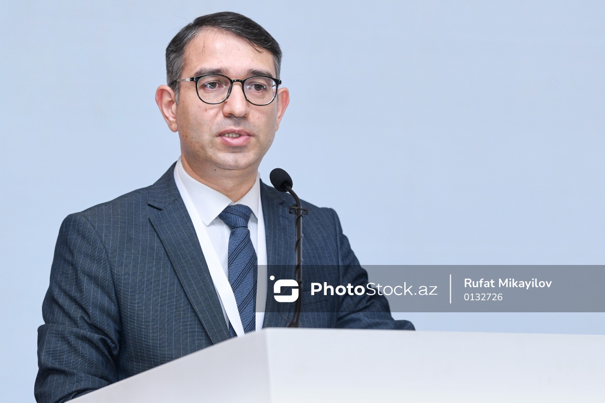 "Dini düşüncə mədəniyyəti: pedaqoji perspektivlər" mövzusunda konfransda iştirak edən Dini Qurumlarla İş üzrə Dövlət Komitəsinin sədr müavini Gündüz İsmayılov.