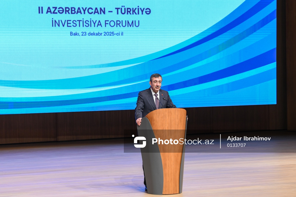 II Azərbaycan-Türkiyə İnvestisiya Forumunda çıxış edən Türkiyənin vitse-prezidenti Cevdet Yılmaz.