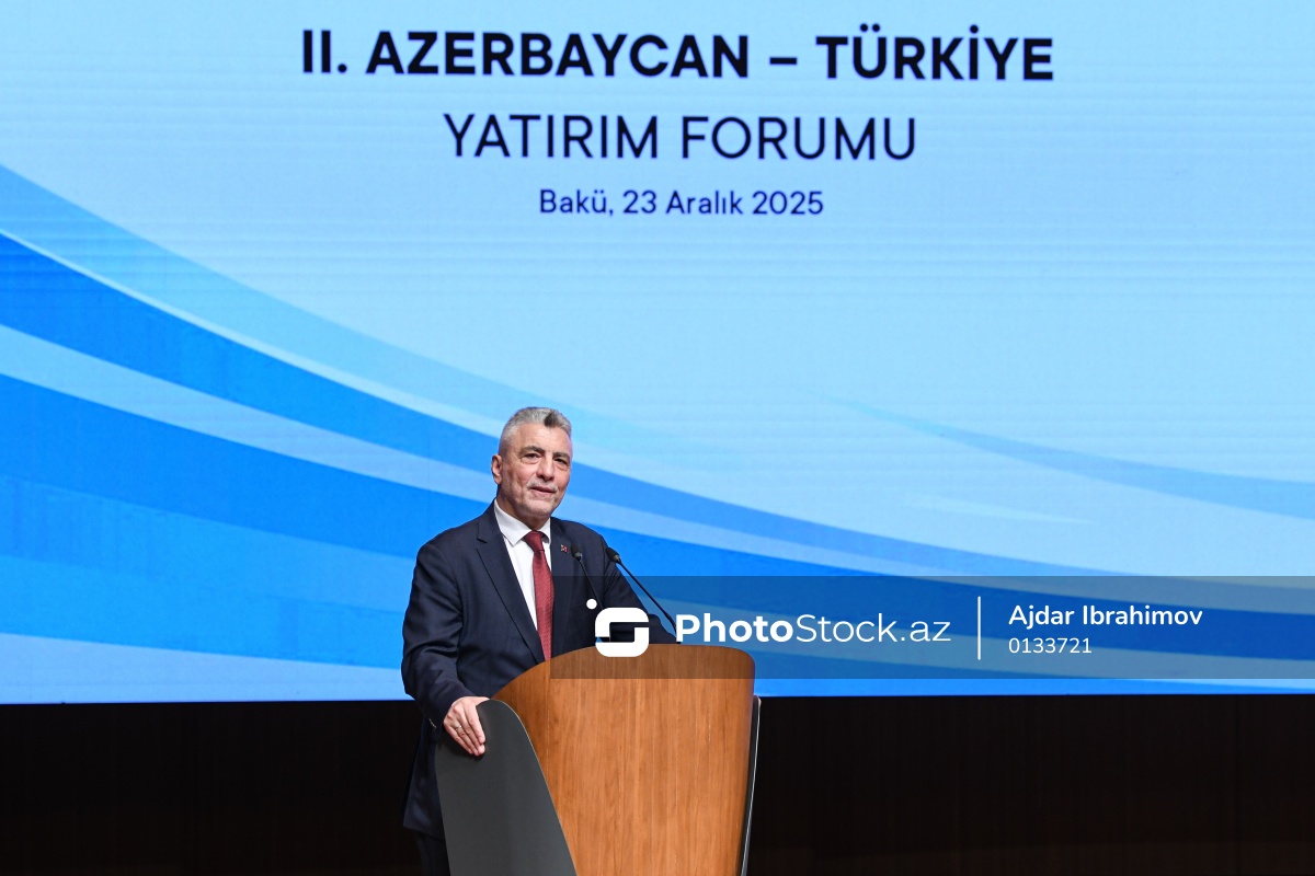 II Azərbaycan-Türkiyə İnvestisiya Forumunda çıxış edən Türkiyənin ticarət naziri Ömər Bolat.