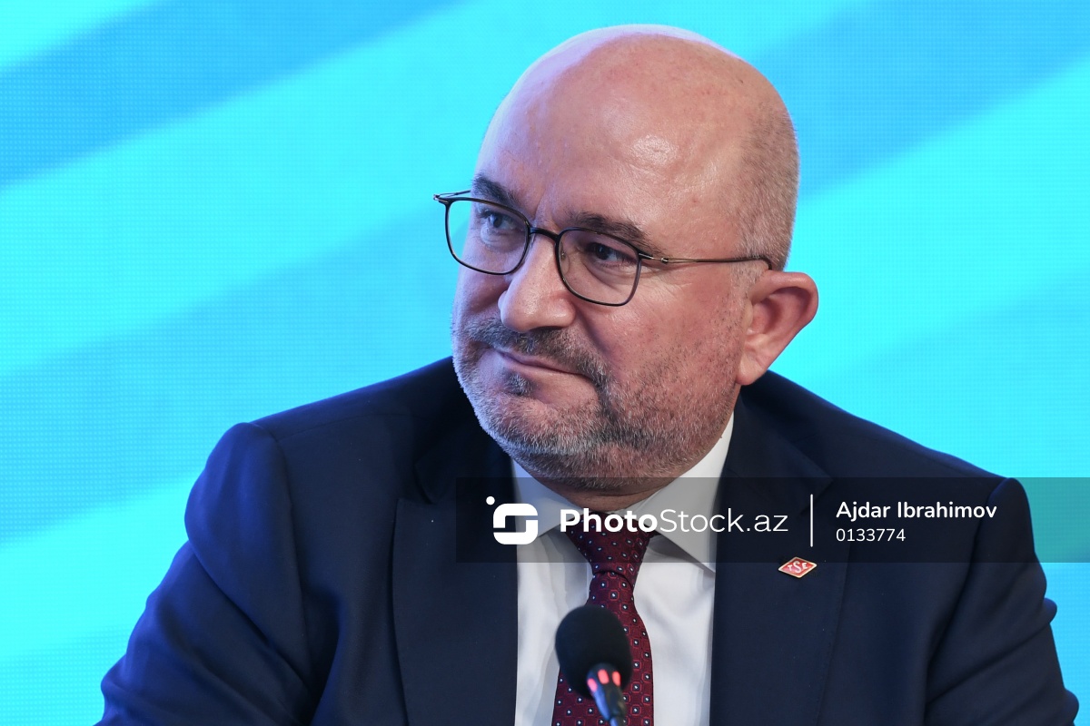 II Azərbaycan-Türkiyə İnvestisiya Forumunda çıxış edən Türk Standartları İnstitutunun İdarə Heyətinin sədri Mahmut Sami Şahin.