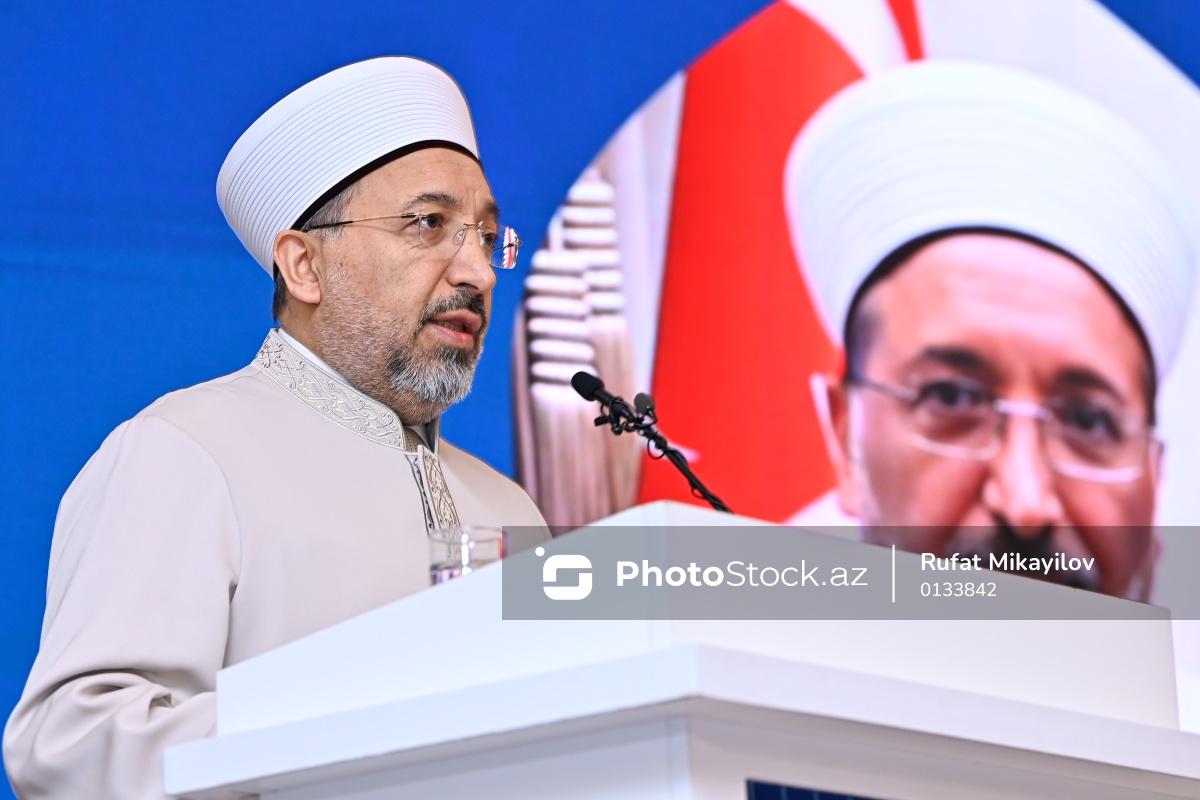 Din Xadimlərinin II Forumunda çıxış edən Türkiyə Diyanət İşləri İdarəsinin sədri Safi Arpaquş.