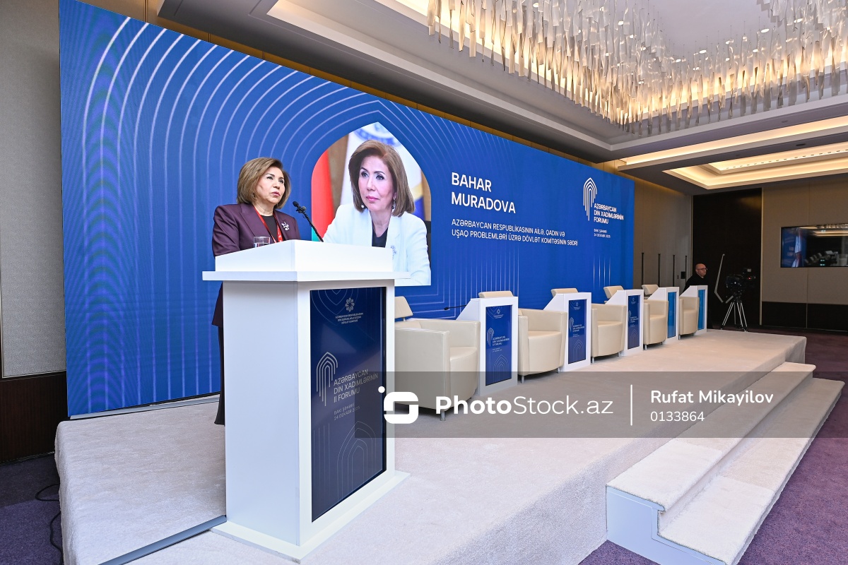 Din Xadimlərinin II Forumunda çıxış edən Azərbaycan Respublikasının Ailə, Qadın və Uşaq Problemləri Komitəsinin sədri Bahar Muradova.