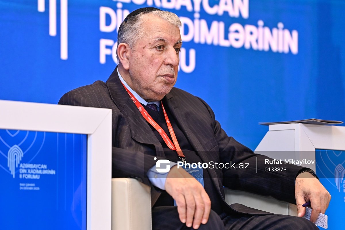 Din Xadimlərinin II Forumu çərçivəsində təşkil edilən "Multikultural dəyərlər sistemi: dövlət-din münasibətlərinin hüquqi və mədəni aspektləri" mövzusunda paneldə çıxış edən Dağ Yəhudiləri Dini İcmasının sədri Milix Yevdayev.