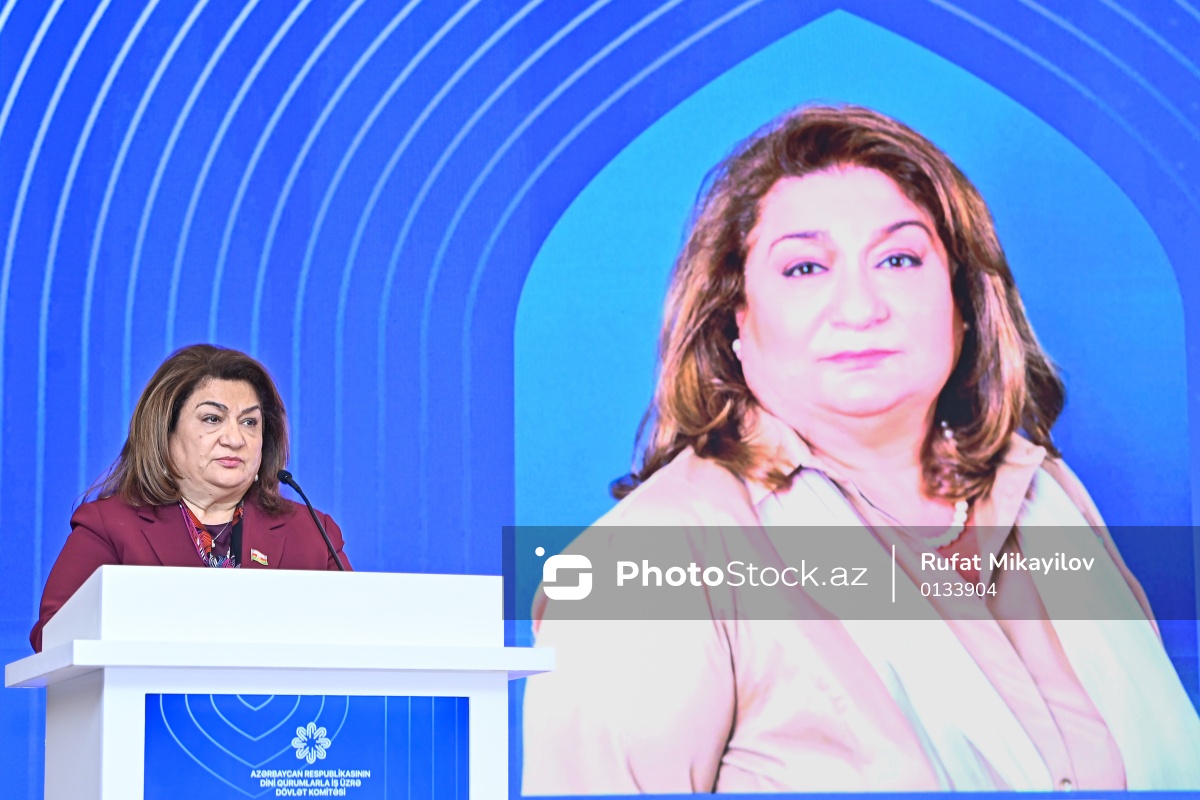 Din Xadimlərinin II Forumunda çıxış edən Azərbaycan Respublikasının Milli Məclisinin Ailə, qadın və uşaq məsələləri komitəsinin sədri, millət vəkili Hicran Hüseynova.