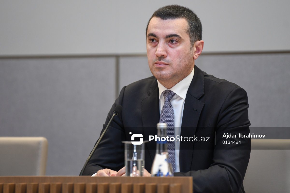 Azərbaycan Respublikasının Xarici İşlər Nazirliyində keçirilən mətbuat konfransında çıxış edən Xarici İşlər Nazirliyinin mətbuat katibi Ayxan Hacızadə.