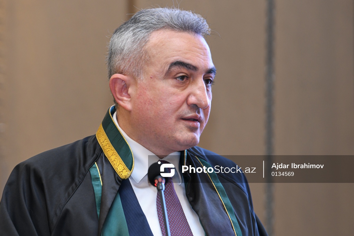 "Vəkil Günü" peşə bayramı münasibətilə keçirilən andiçmə və təltifolunma mərasimində çıxış edən Vəkillər Kollegiyasının (VK) sədri Anar Bağırov.