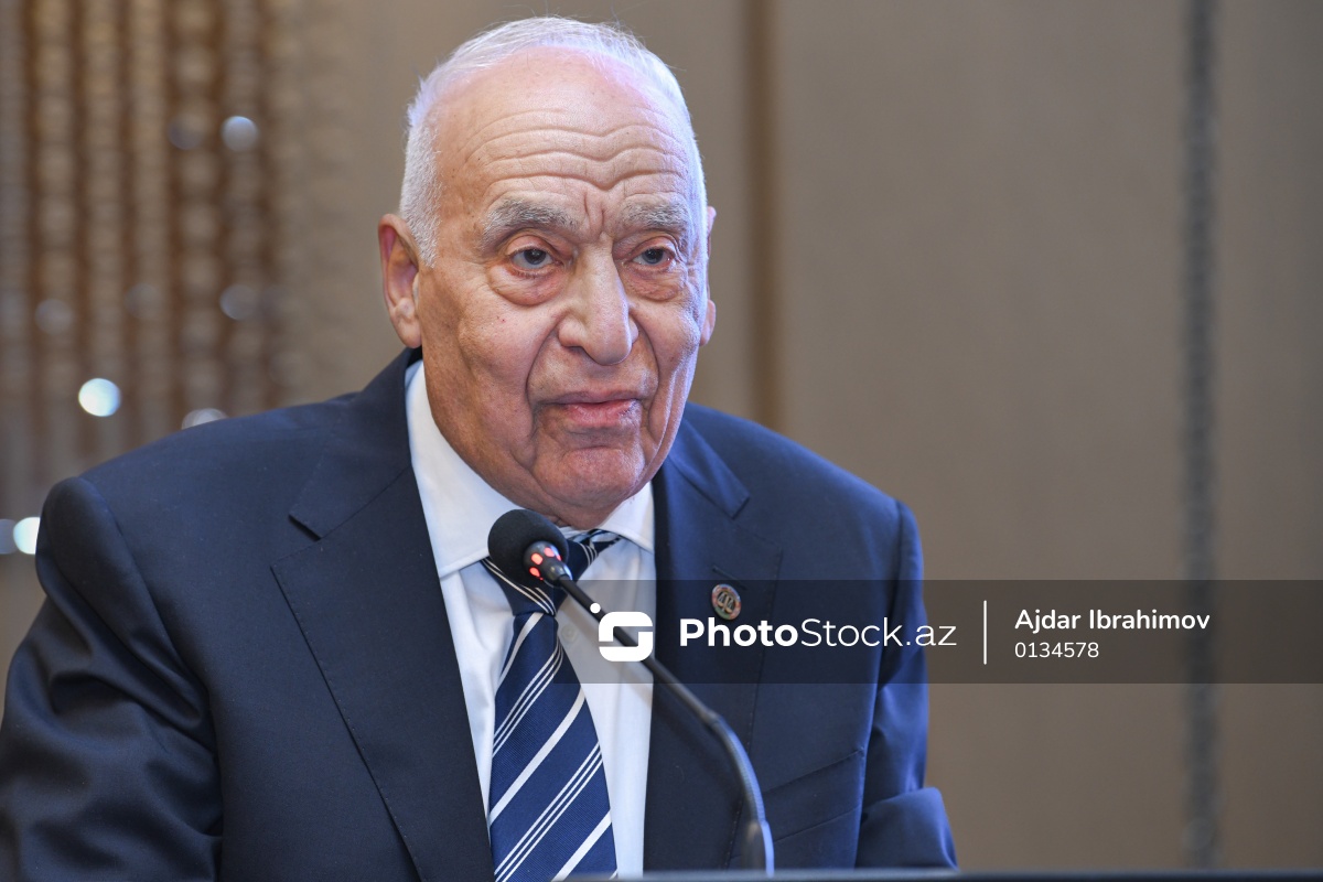 "Vəkil Günü" peşə bayramı münasibətilə keçirilən andiçmə və təltifolunma mərasimində çıxış edən Vəkillər Kollegiyasının (VK) Ağsaqqallar Şurasının sədri İkram Kərimov.