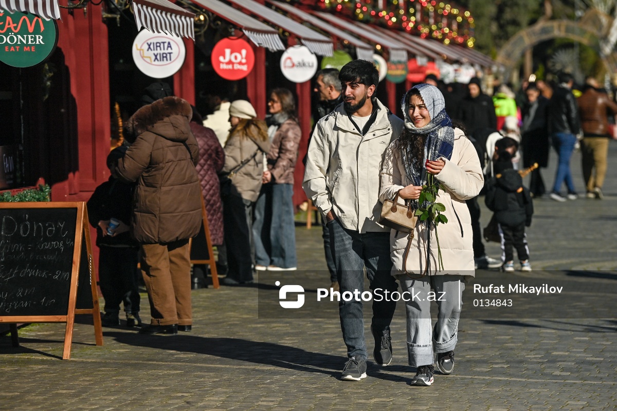 Yeni ilin yaxınlaşması ilə əlaqədar olaraq gündüz saatlarından etibarən Bakıda xüsusi canlanma müşahidə olunur. Şəhər bayram ab-havasına bürünüb; küçələrdə parlaq işıqlar yanır, vitrinlər rəngarəng bəzəklərlə diqqət çəkir. Paytaxtın bu gözəlliyini sakinlərlə yanaşı, şəhərimizin qonaqları da böyük həvəslə izləyirlər. Bəzi insanlar asudə vaxtını bəzədilmiş küçələrdə keçirir, bəziləri isə tələsik addımlarla son bayram hazırlıqlarını görür.