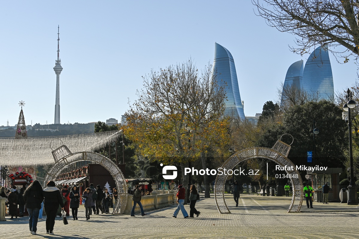 Yeni ilin yaxınlaşması ilə əlaqədar olaraq gündüz saatlarından etibarən Bakıda xüsusi canlanma müşahidə olunur. Şəhər bayram ab-havasına bürünüb; küçələrdə parlaq işıqlar yanır, vitrinlər rəngarəng bəzəklərlə diqqət çəkir. Paytaxtın bu gözəlliyini sakinlərlə yanaşı, şəhərimizin qonaqları da böyük həvəslə izləyirlər. Bəzi insanlar asudə vaxtını bəzədilmiş küçələrdə keçirir, bəziləri isə tələsik addımlarla son bayram hazırlıqlarını görür.