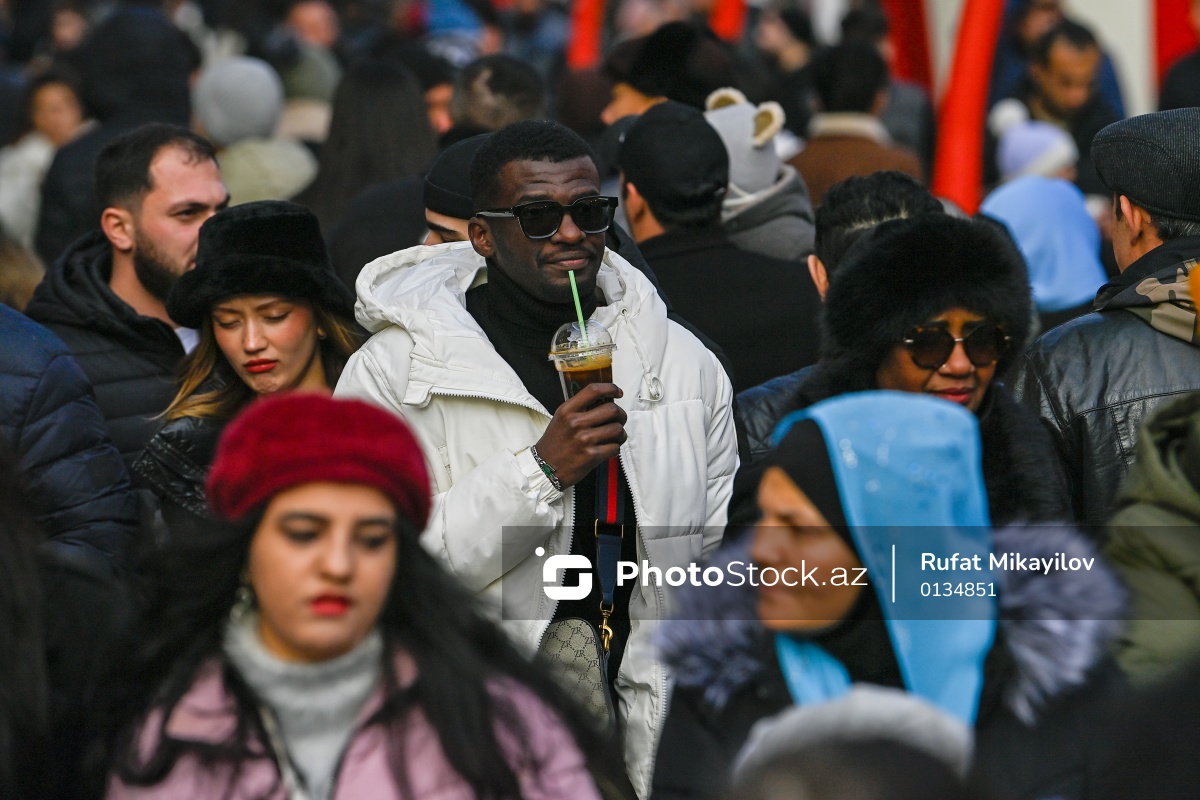 Yeni ilin yaxınlaşması ilə əlaqədar olaraq gündüz saatlarından etibarən Bakıda xüsusi canlanma müşahidə olunur. Şəhər bayram ab-havasına bürünüb; küçələrdə parlaq işıqlar yanır, vitrinlər rəngarəng bəzəklərlə diqqət çəkir. Paytaxtın bu gözəlliyini sakinlərlə yanaşı, şəhərimizin qonaqları da böyük həvəslə izləyirlər. Bəzi insanlar asudə vaxtını bəzədilmiş küçələrdə keçirir, bəziləri isə tələsik addımlarla son bayram hazırlıqlarını görür.