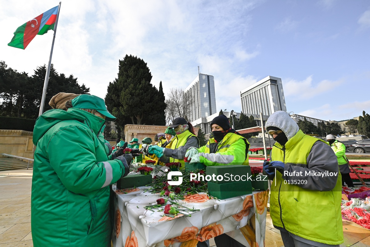Şəhidlər xiyabanında 20 Yanvar faciəsinin ildönümü ilə bağlı aparılan hazırlıq işləri