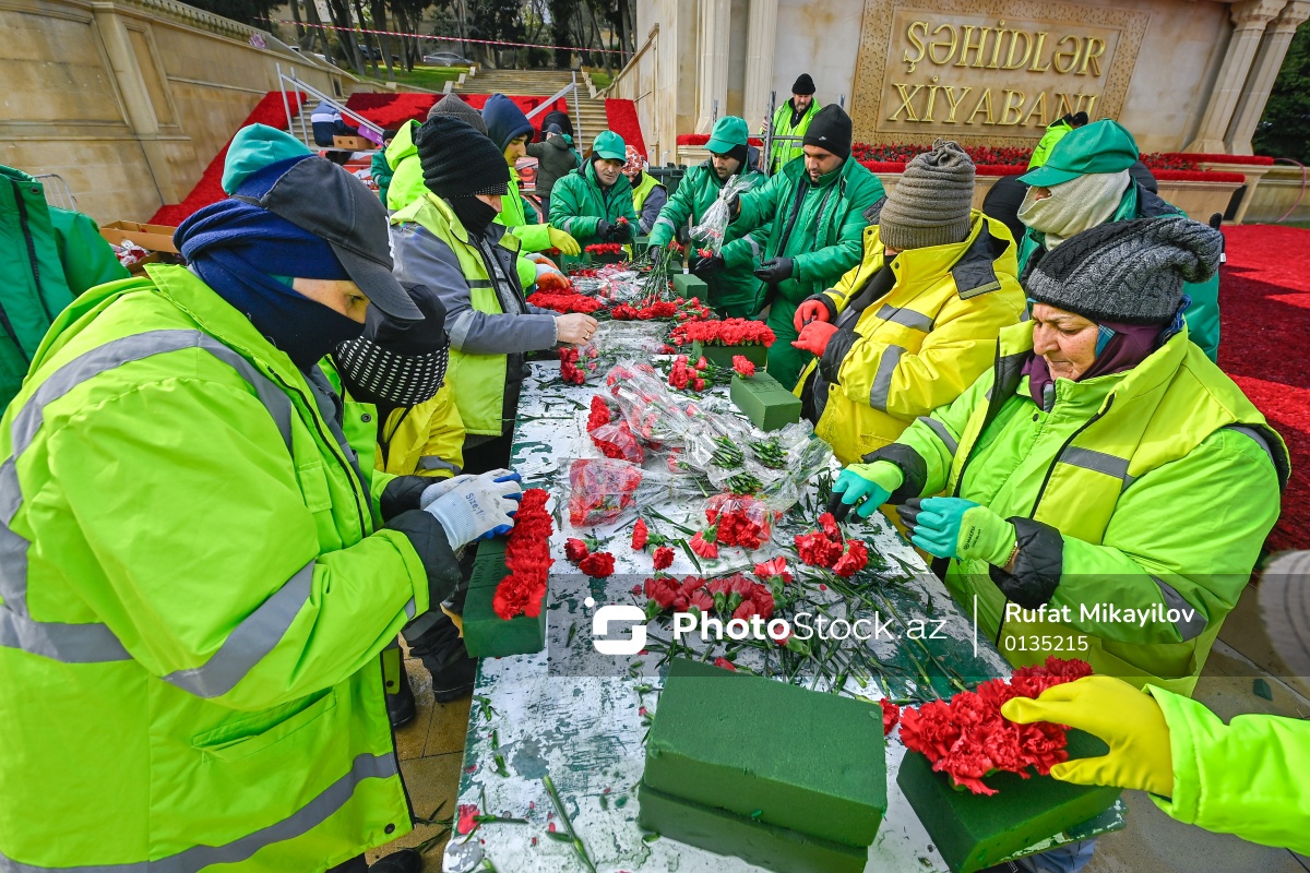 Şəhidlər xiyabanında 20 Yanvar faciəsinin ildönümü ilə bağlı aparılan hazırlıq işləri
