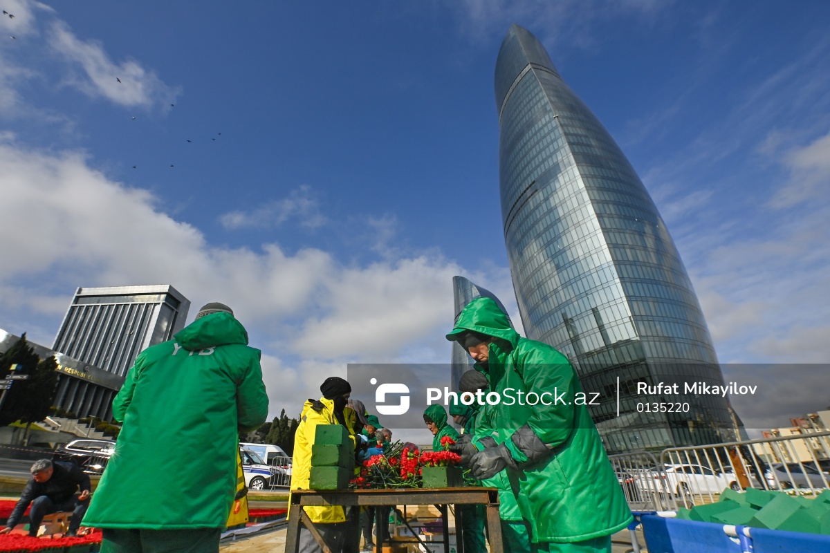 Şəhidlər xiyabanında 20 Yanvar faciəsinin ildönümü ilə bağlı aparılan hazırlıq işləri