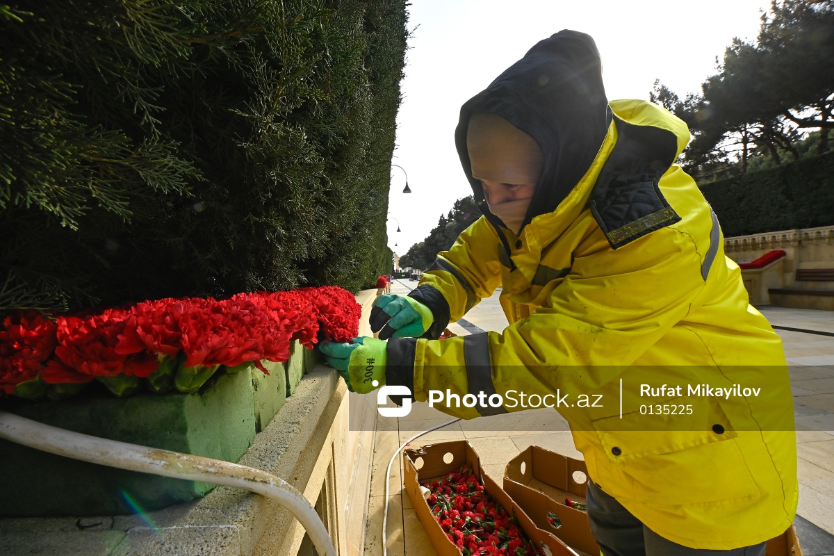 Şəhidlər xiyabanında 20 Yanvar faciəsinin ildönümü ilə bağlı aparılan hazırlıq işləri