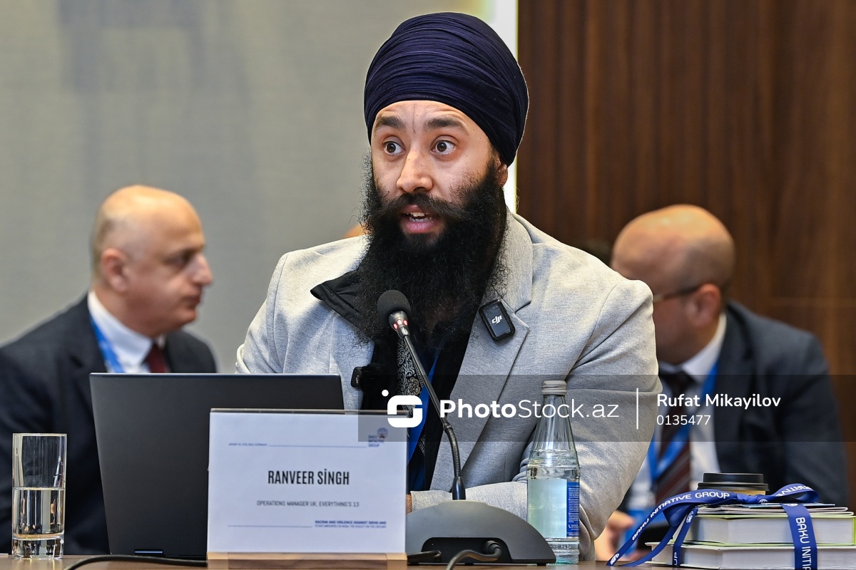 "Hindistanda Siqhlərə və digər milli azlıqlara qarşı irqçilik və zorakılıq: mövcud reallıqlar" adlı beynəlxalq konfransda çıxış edən Böyük Britaniyada yerləşən "Everything"s 13"ün əməliyyatlar üzrə meneceri Ranveer Singh.