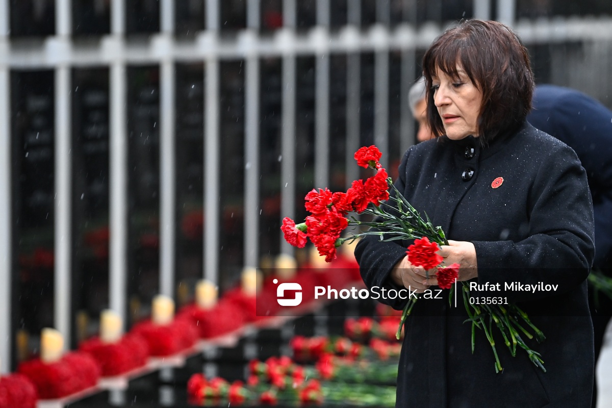 20 Yanvar faciəsinin 36-cı ildönümü ilə əlaqədar Şəhidlər xiyabanını ziyarət edən Azərbaycan Respublikasının Milli Məclisinin sədri Sahibə Qafarova.