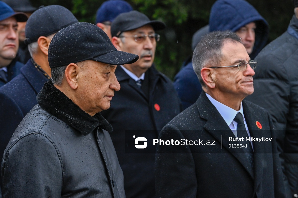 20 Yanvar faciəsinin 36-cı ildönümü ilə əlaqədar Şəhidlər xiyabanını ziyarət edən Azərbaycan Respublikasının Təhlükəsizlik Şurasının katibi Ramil Usubov (sol) və müavini Mədət Quliyev (sağ).