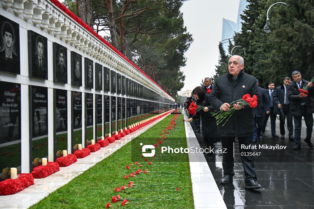 20 Yanvar faciəsinin 36-cı ildönümü ilə əlaqədar Şəhidlər xiyabanını ziyarət edən Azərbaycan Respublikasının Baş naziri Əli Əsədov.