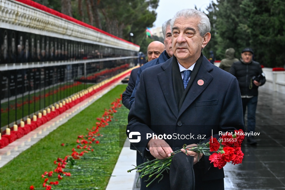 20 Yanvar faciəsinin 36-cı ildönümü ilə əlaqədar Şəhidlər xiyabanını ziyarət edən Azərbaycan Respublikası Milli Məclisi sədrinin birinci müavini Əli Əhmədov.