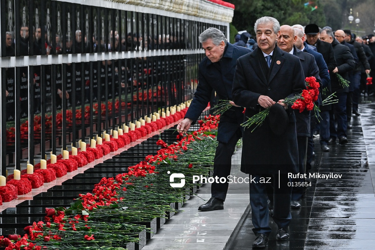 20 Yanvar faciəsinin 36-cı ildönümü ilə əlaqədar Şəhidlər xiyabanını ziyarət edən Azərbaycan Respublikası Milli Məclisi sədrinin birinci müavini Əli Əhmədov.