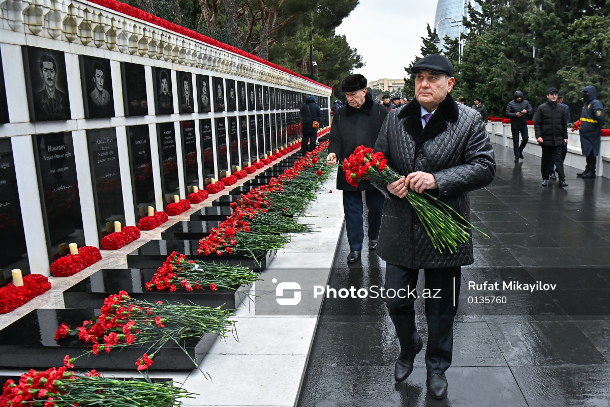 20 Yanvar faciəsinin 36-cı ildönümü ilə əlaqədar Şəhidlər xiyabanını ziyarət edən Azərbaycan Respublikası Dövlət Statistika Komitəsinin sədri, Yeni Azərbaycan Partiyası Sədrinin müavini Tahir Budaqov.