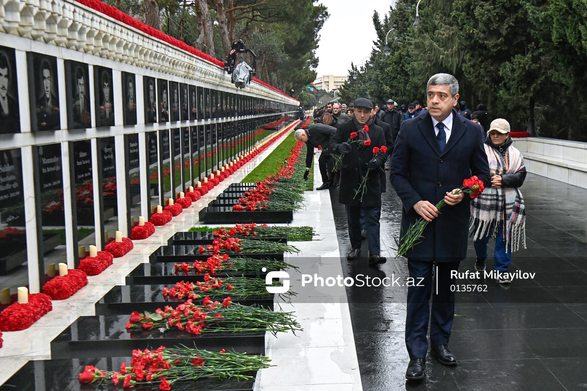 20 Yanvar faciəsinin 36-cı ildönümü ilə əlaqədar Şəhidlər xiyabanını ziyarət edən Azərbaycan Respublikasının əmək və əhalinin sosial müdafiəsi naziri Anar Əliyev.